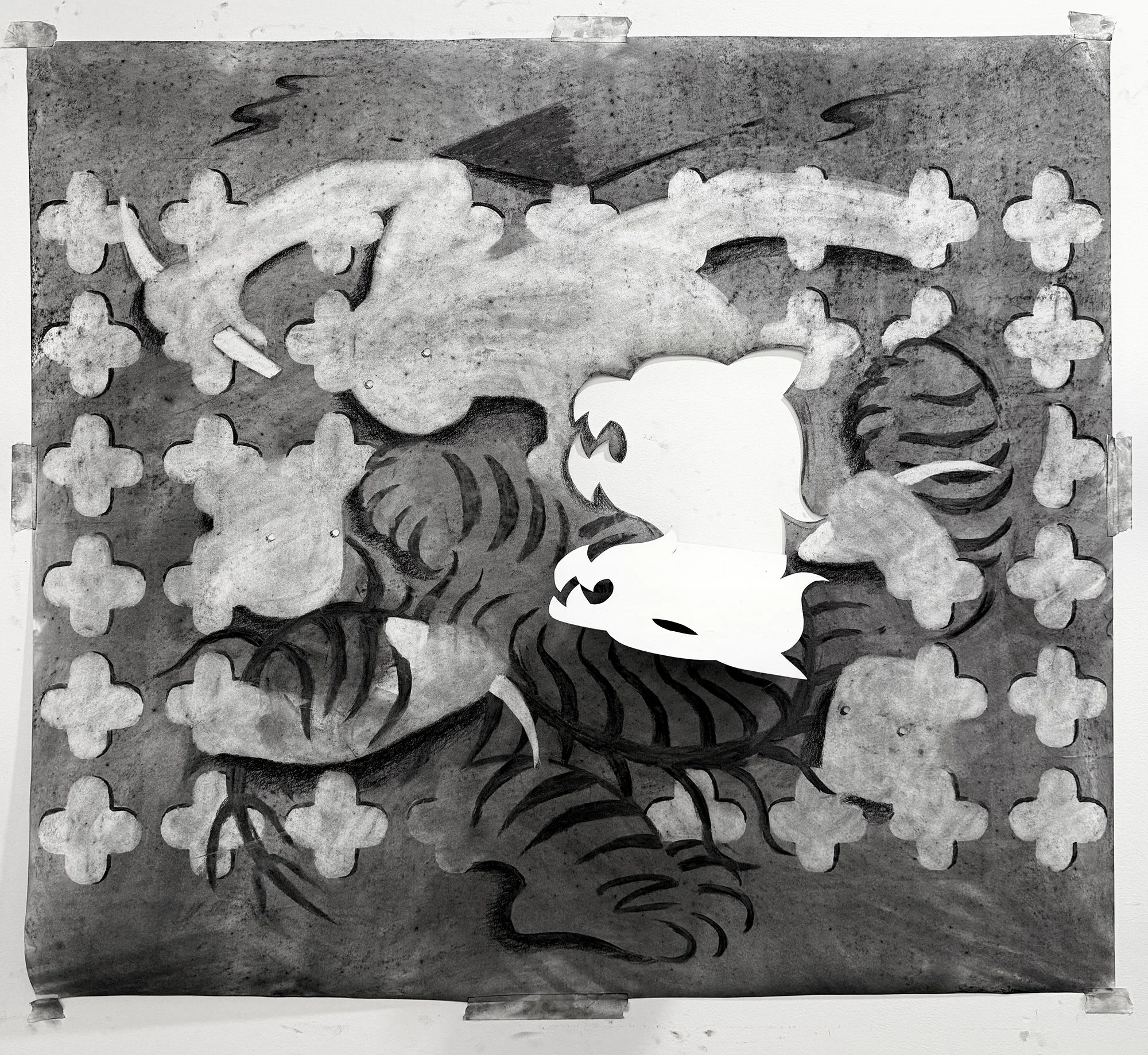 Brett Park, Paper Tiger No.1, 2025, Charcoal on paper, 40.5” x 36”